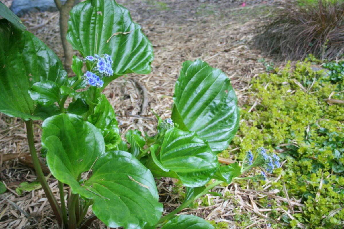 While I never tire of the old-fashioned sweetness of a stand of forget-me-nots (Myosotis听scorpioides),听I have to admit: their foliage lacks presence. Not so with this beauty. (Myosotidium hortensia; hardy to ) has huge, glossy leaves with deeply impressed, crinkled veins. Frogs love to perch on the round leaves and enjoy a bathe in the dew. Best of all, the flowers are a deeper blue than forget-me-nots, making this dramatic foliage plant as lovely in bloom as it is in leaf. [See first photo above.]