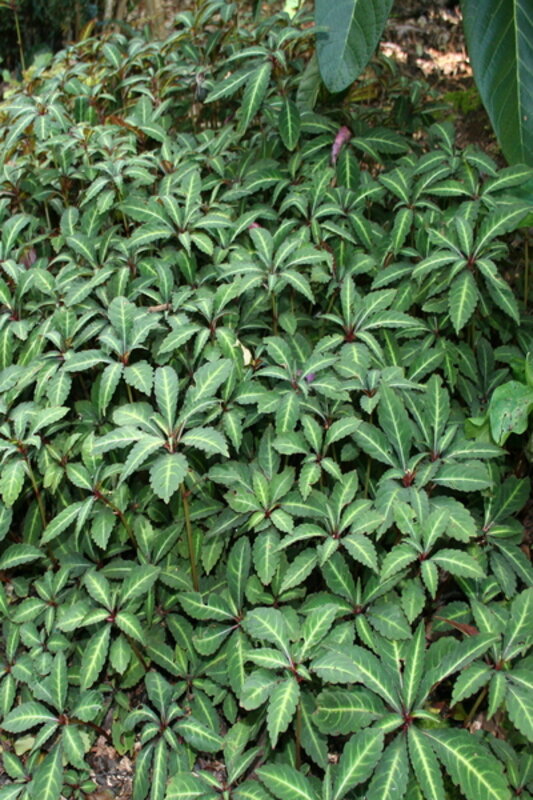 Most gardeners are familiar with the annual impatiens which are grown for their bold, tropical-looking blooms, but hardy impatiens (Impatiens omeiana; hardy to ) flips this equasion on its head by showing off gorgeous foliage (and ho-hum blooms, not that you鈥檒l notice). The gold veins and crenellated edges give this slowly-spreading shade perennial a classy, modern look. It goes well with black-flowered plants, and the burgundy undersides of each leaf are lovely when backlit by the sun. You can purchase it . [See photo at left.]