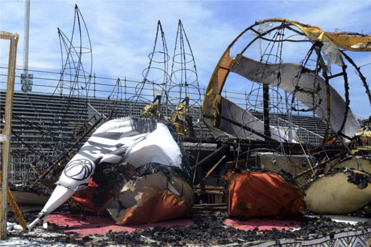 The float, authorities said, caught fire after it struck a power line during maneuvers following its participation in ongoing Carnival festivities.