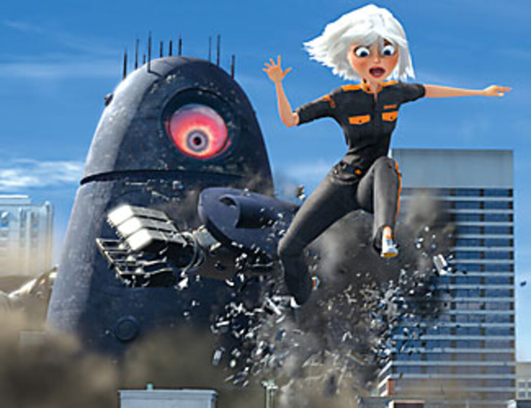 The voice talent is unusually high-caliber. Reese Witherspoon is the California girl whose encounter with space goo makes her grow 50 feet tall. Her comrades in arms, joining her in battling an alien robot, include Hugh Laurie's Dr. Cockroach, Seth Rogen's megagloppy B.O.B., and Will Arnett's half-ape, half-fish Missing Link. My favorite voice/animation combo, however, is Stephen Colbert's very terrestrial president of the United States. Grade: B (Rated PG for sci-fi action, some crude humor, and mild language.)