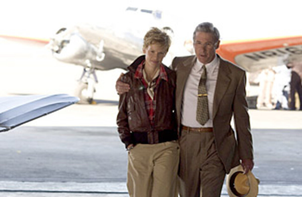 Among the many boundaries in "Amelia" is the insipid romance between Earhart and her publicist-husband George Putnam, played by Richard Gere with an old pro gravitas that doesn't do him any favors. Putnam, who published Lindbergh's autobiography and helped turn Earhart into a media sensation, is such a lap dog for love that you keep waiting for something horrible to happen to him. Maybe he'll turn into the Wolfman? But no, he's an ideal hubby all the way through (even though the marriage, in real life, was rockier). Even a purported affair between Earhart and aeronautics pioneer Gene Vidal (Ewan McGregor) is so toned-down as to be nonexistent. It's kissypoo erotics. (Yes, Gene Vidal was the father of Gore, who is well played as a young boy by William Cuddy.)