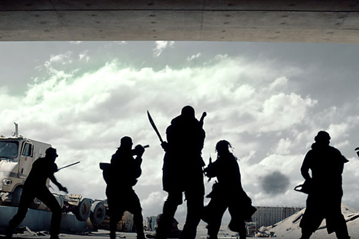 Washington鈥檚 character is essentially nameless, although if you stick it out long enough 鈥 or bother to recall the movie鈥檚 title 鈥 you鈥檒l know him as Eli. He makes his way across the charred, barren landscape with an impressive amount of fighting equipment strapped to his torso, which, when he undrapes, looks heavily scarred. He listens to music, at least I think he does, with what looks like an iPod. Guess those things can survive even an end-of-world blowout. He also zealously guards his prize possession, a heavy, leatherbound tome that he calls 鈥渢he book,鈥 although clearly it鈥檚 the Bible.