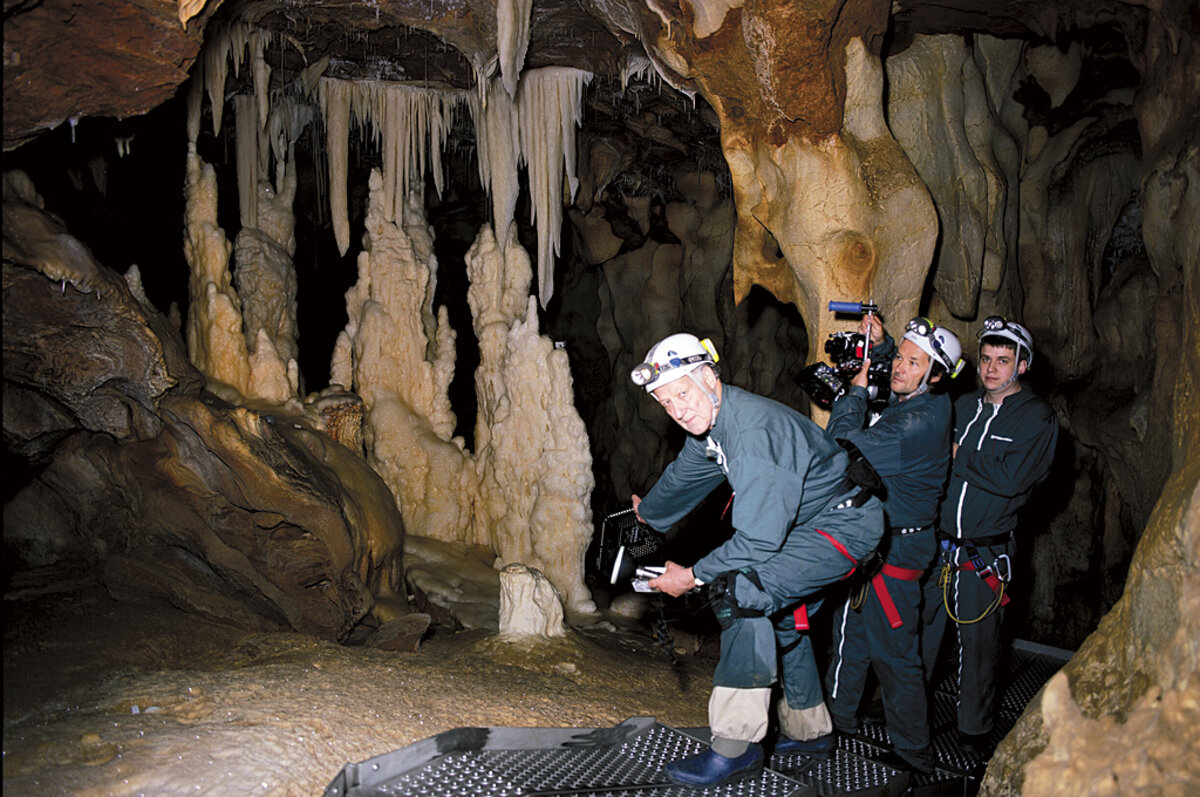Over a period of six days in the spring of 2010, for only four hours each day, Herzog and his three-man camera crew, suspended on walkways two feet wide, traversed the cave's cathedral-like 1,300-foot-long interior, with its milk-white spires of stalactites and stalagmites. The filmmakers wielded portable 3-D cameras and lights emitting no heat.