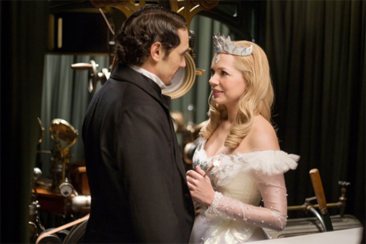 In this version, our wizard started out as Oscar Diggs (James Franco), a small-time Kansas carnival magician who is whisked via hot air balloom into the Land of Oz, where, as imagined by Raimi and screenwriters Mitchell Kapner and David Lindsay-Abaire, he encounters not one but three witches: Theodora (Mila Kunis), Evanora (Rachel Weisz), and Glinda (Michelle Williams). Glinda, of course, is good 鈥 or, to be precise, Good.
