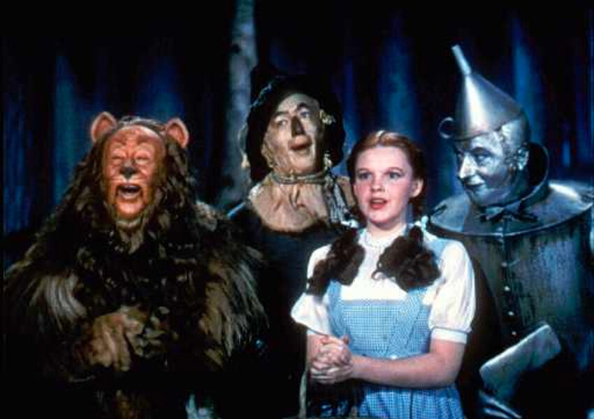 'The Wizard of Oz' stars Judy Garland (second from r.), Ray Bolger (second from l.), Jack Haley (r.), and Bert Lahr (l.).