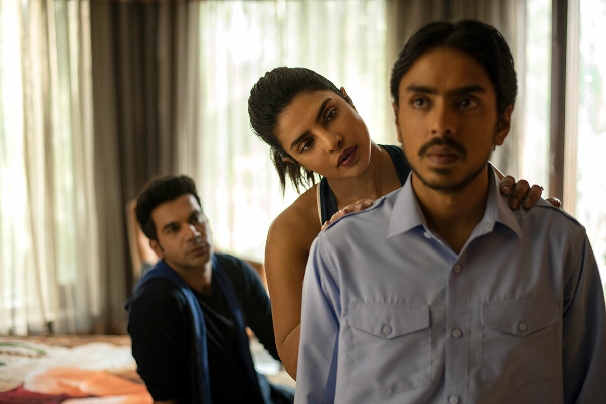 In its tone and propulsion, “The White Tiger” is actually closer to an Indian “Goodfellas.” Balram is fully aware that he was born into a world, a caste, that will not allow him to rise. And yet rise he must. He plainly states that the only way to the top in India is through crime or politics (and from what we see, they are synonymous). He schemes his way into the bad-tempered landlord’s good graces by cruelly framing and displacing the head chauffeur. With maximum obsequiousness, he ingratiates himself with the landlord’s Westernized son Ashok (Rajkummar Rao), recently returned from America to help with the family business, and with Ashok’s Indian American wife Pinky (Priyanka Chopra Jonas).