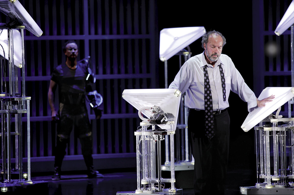 "Death and the Powers," which has its North American premi猫re March 18 in Boston, fills the stage with nine semi-autonomous "opera bots," as well as huge moving, flashing walls and a chandelier whose strings both seem to speak and respond to touches from a human performer.