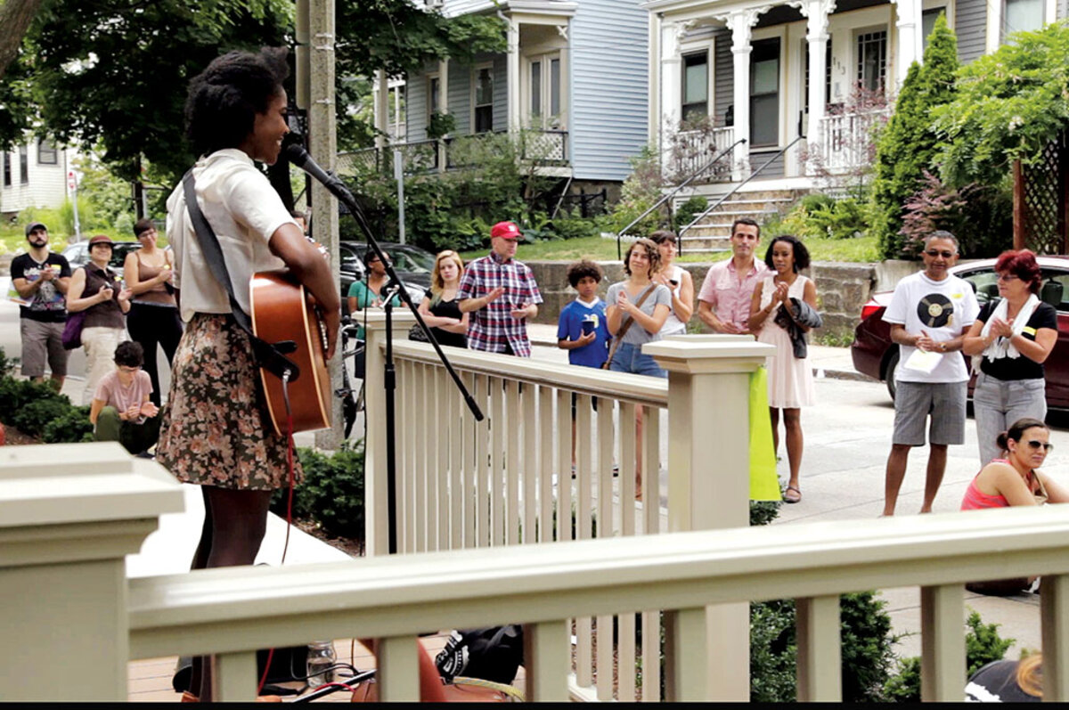 Around the corner came the strums of banjo music, a few blocks away a drummer and guitarist thumped out classic rock, and in the heart of town a trio of folk singers blended their voices in harmony. Audience members young and old sat and watched from lawn chairs, stood on curbs, or sat on the steps of front porches. Welcome to Jamaica Plain (Mass.) Porchfest, one of a growing number of events nationwide that are setting up music stages on neighborhood streets.聽