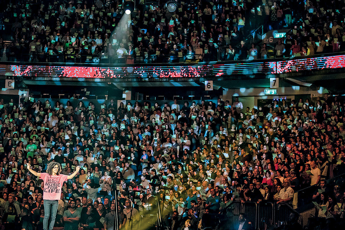 Within two hours, these strangers are singing a complicated song about love and protection in three-part harmony. They have come together to take part in the most recent event for Koolulam, a mass singing initiative created with the goal of mending searing social divisions in this country by encouraging people to stand up and make music together. The events are filmed and shared widely on social media and have gone viral in Israel, with some having been viewed millions of times.聽