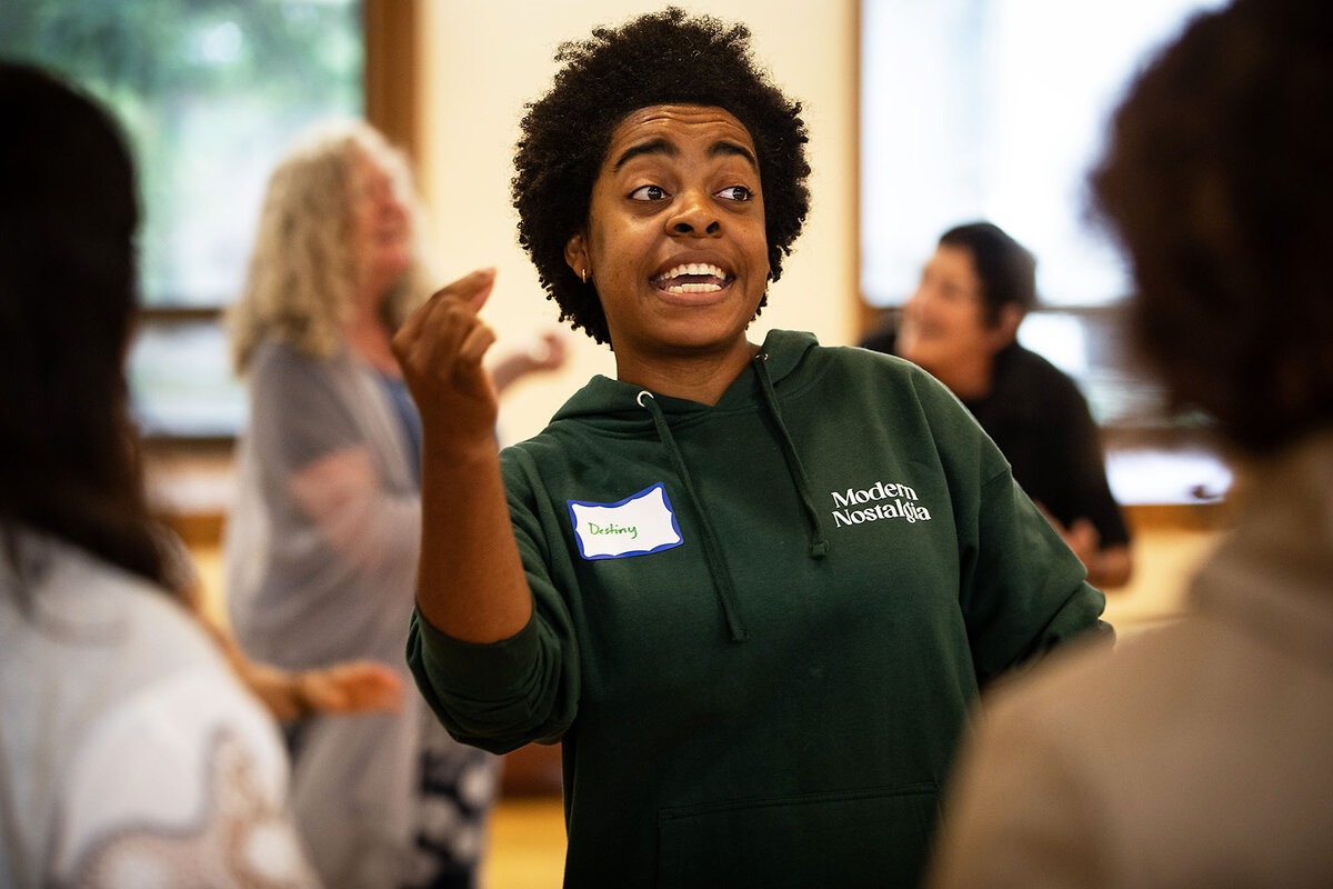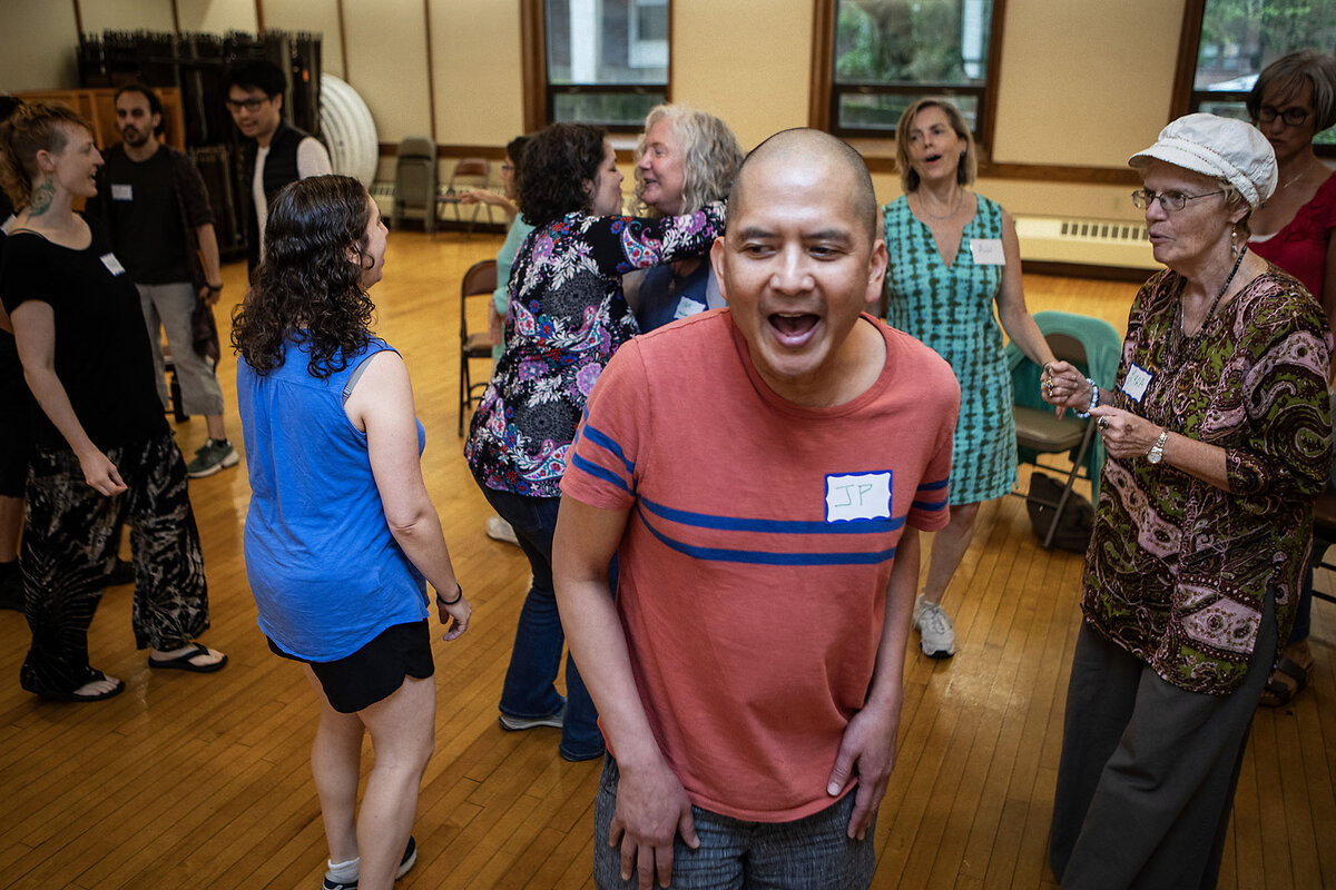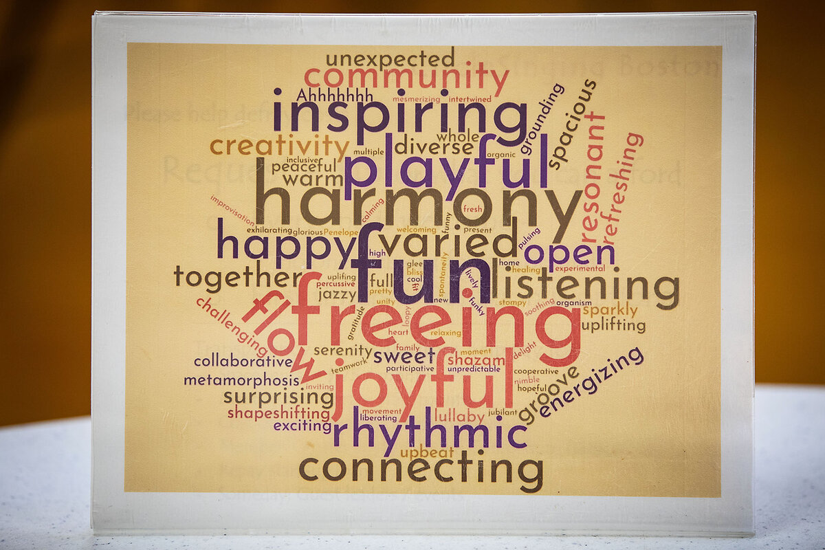 Each of the four Boston groups, run by different organizers, holds two-hour meetings that prioritize openness. One Boston CircleSinger, Maureen Root, says her favorite exercise starts by singing a random word – not for its meaning, but for its sounds.