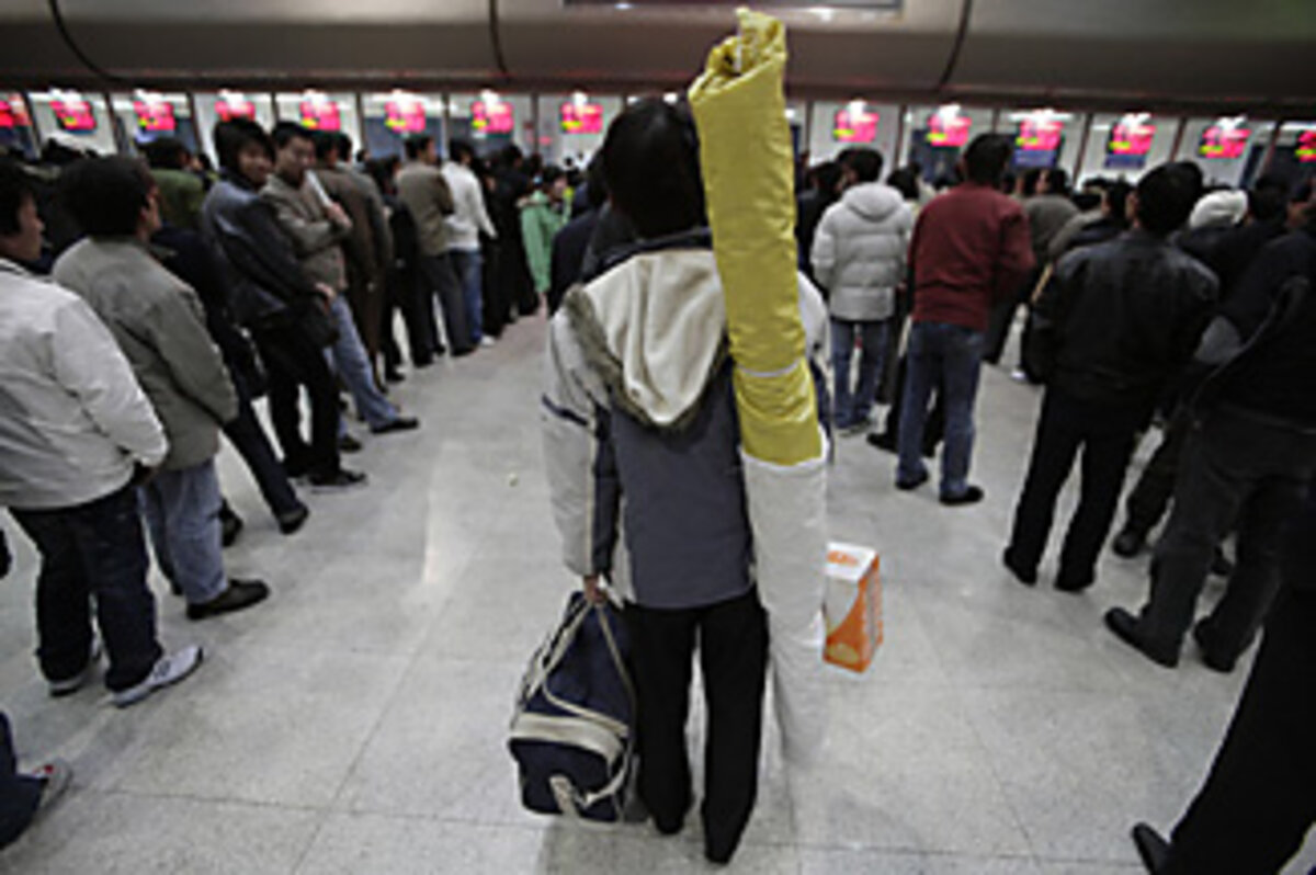 Armed with bare muscle and a thick rope for tying bags together, they jogged after approaching taxis and tried to make eye contact with passengers who might need help. One haul was 3 yuan (35 cents). For a Chinese farmer, several hauls a day was a gold mine.