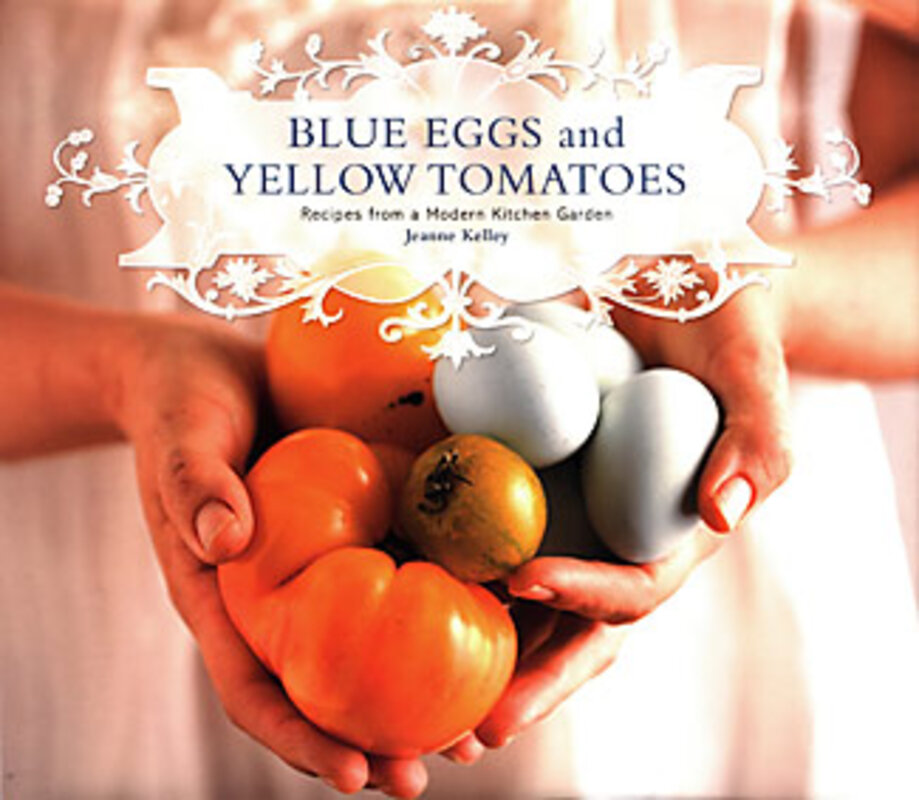 The only problem with "Blue Eggs and Yellow Tomatoes," the new cookbook from Jeanne Kelley, is that you won't want to spill anything on it. That's because this beautifully designed compilation, replete with mouthwatering color photographs, looks and feels more like a coffee-table book than a recipe collection. Still, if you lug Ms. Kelley's offering into the kitchen, you won't be disappointed.