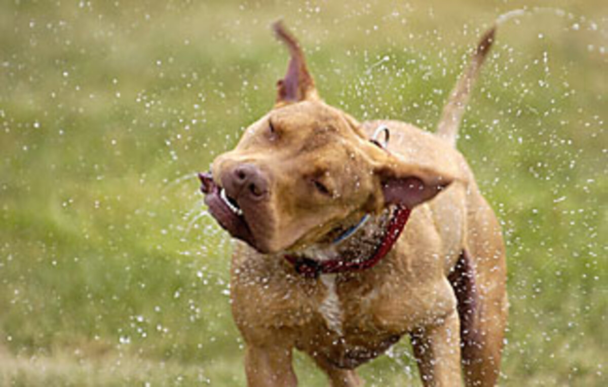 I took the pit bull's leash from my helpers and gently tugged the dog toward my car so I could get my sandwich. Then I tugged him over to sit in the shade with me while I ate.
