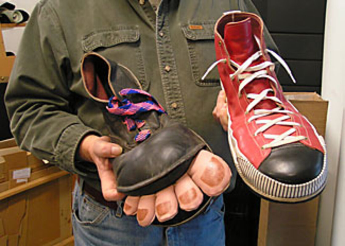 The first thing you notice at the Shoe School in Port Townsend, Wash., is the shelf by the door. It's lined with giant clown shoes 鈥 bright red sneakers and big black hobo boots with huge toes sticking out the front. Most look like they're fit for a foot that's at least a size 20. You might wonder, are a clown's feet really that large?