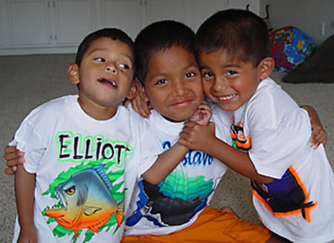 "No! I mean the boys 鈥 did you adopt them together?"
