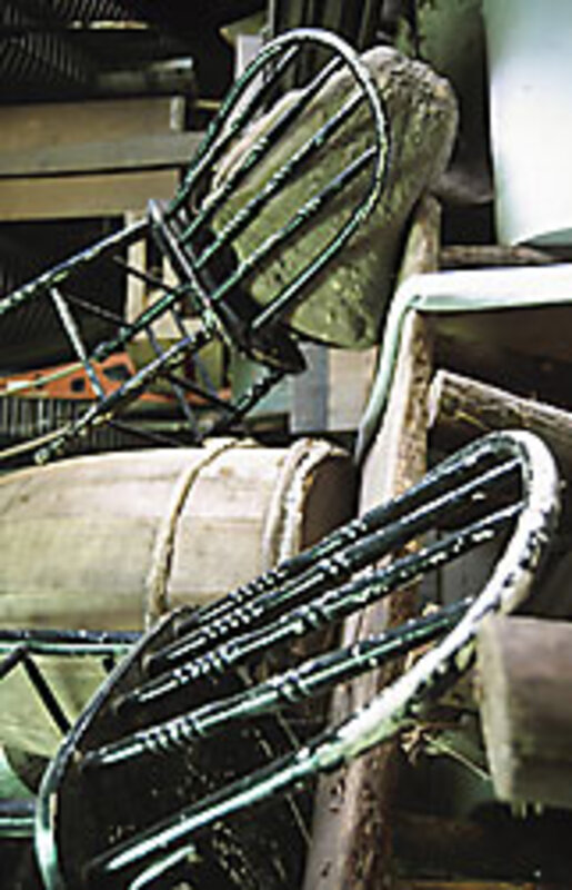 In between our conversations, I looked at my other furniture. So many projects! I had collected six fabulous dining room chairs, all of which were broken. That was the only way they matched. The initial investment was only a dollar or two per chair, so I reasoned that the splintered arms, tattered seats, loose joints, dull finishes, and chipped ornamentation were worth it. I was sure that each piece of worn junk could be transformed into a gorgeous dining chair with just a few hours of work.