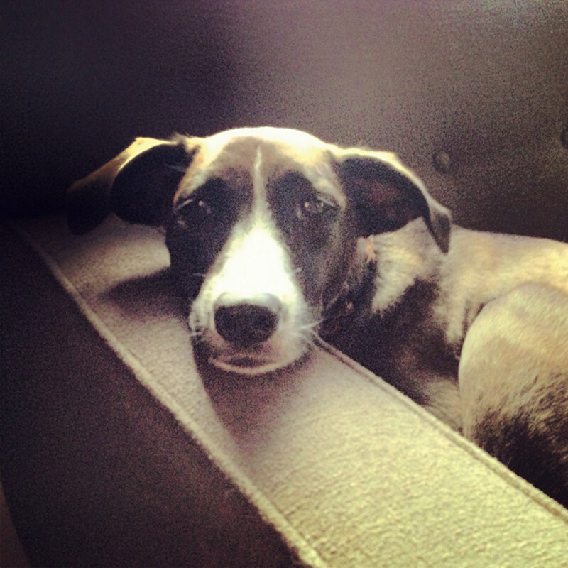 Next thing we knew we were back in the car. Perched on the backseat, nestled into the reassuring arms of our overjoyed 8-year-old neighbor David, was Lucie, a sleek and graceful 1-year-old mini-Lab-greyhound mix rescued from the streets of Puerto Rico.