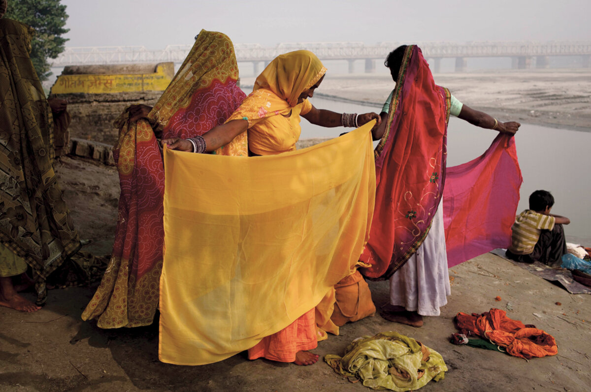 I sat in a hot, crowded second-class ladies-only car on the train into Mumbai. The open doors and unglazed windows let in some relief of moving air. With three stations to go, an elderly woman boarded the train. She was bent and thin, but elegant still in an emerald-green sari with dark red trim. Glass bracelets circled her wrists; her hair was pulled back in a tight ballerina bun.