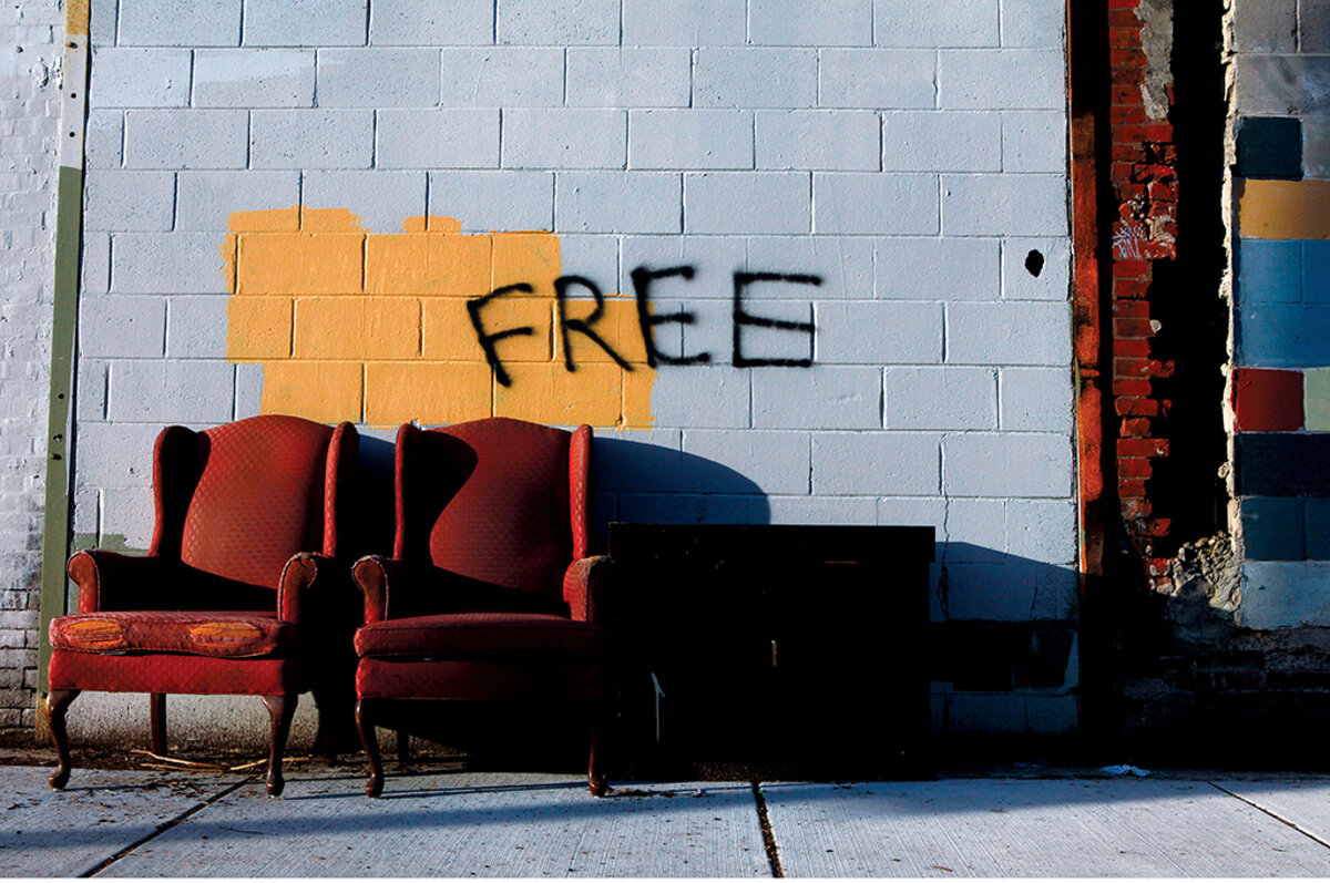 A couple of years back, in a fever of industry, I was able to empty my garage of a door, two bald tires, a torn tarp, a roll of chicken wire, a rake with a broken handle, a lobster crate, and half a sack of concrete. I placed them by the street, and the gleaners began to swarm.听