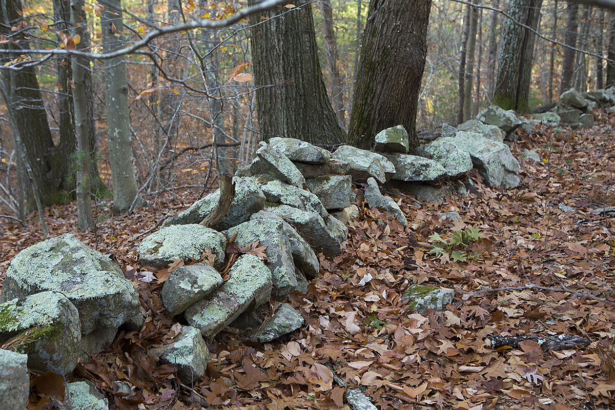 Stone walls border the edges of our land, and separate old cow pastures and cow paths within it. It is no surprise, considering the history, that the border with one neighbor begins at a hole drilled in a stone, then follows the stone wall northwesterly to another hole drilled in another stone.聽