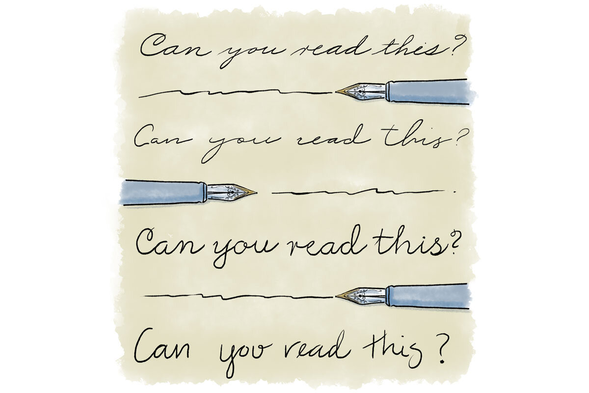 Where a lot of us went really wrong was deciding we should be more artistic about our handwriting. Ah, wayward youth! No, we should not. My fifth grade teacher wrote with little backward threes for the letter 鈥渆.鈥 It looked cool. Immediately I began trying to jam in little backward threes, and that took some jamming. They don鈥檛 really fit that well. Not only that, but they don鈥檛 hook up to any of the other letters. So every time an 鈥渆鈥 came up in a word, which is often, I had to lift the pencil to get it started, and before long I was lifting it for other letters too. The Palmer Method 鈥渞鈥 didn鈥檛 look like an 鈥渞鈥 until I鈥檇 written it as a capital letter, only smaller. I believe 鈥済鈥檚鈥 were the next to get complicated. By the time I was in junior high I was basically printing, only on a slant, with many of the letters miniaturized uppercase versions.