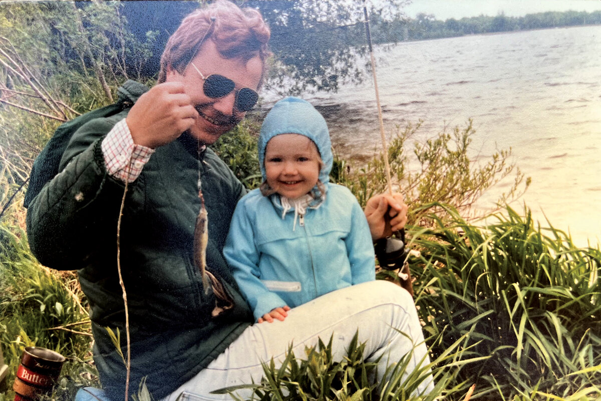 Myself, a young woman, home from the city, and my dad. A body of water, off-limits to motorboats, that we have fished together for years.