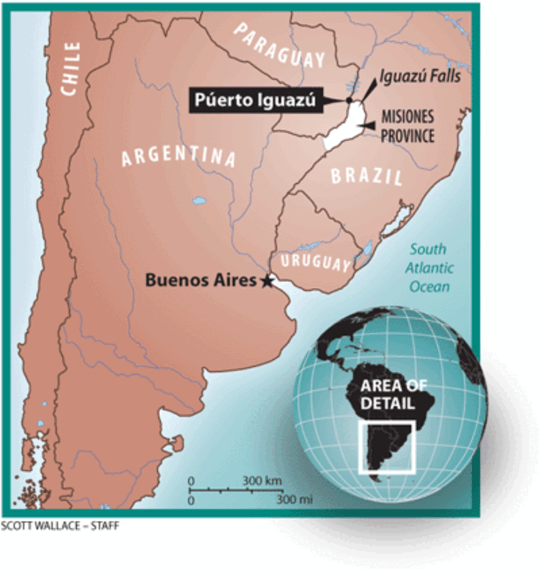 Many people from the Guarani indigenous communities that dot Misiones, the state in which the park lies, sell their arts and crafts here. The tribal head, or cacique, told me that the falls, whose name means "great water" in Guarani, are a blessing and a dilemma. He worries that outside influence is destroying their culture, even though they are dependent on income generated by tourists.