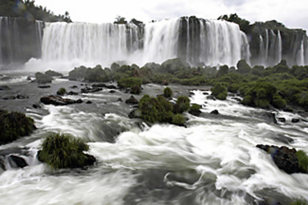 Iguazú National Park sits on a massive plateau formed about 150 million years ago by basaltic lava. The river flows from mountains hundreds of miles to the east until it drops off into a series of some 275 falls, depending on the season, that form a semicircle spanning about 1-1/2 miles. Most of it sits in Argentina; Brazil also claims a share of this wonder.