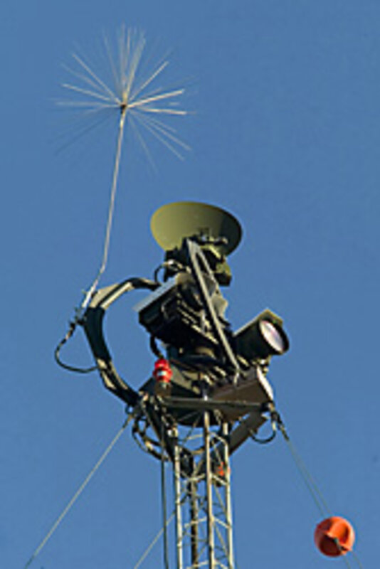 At the top of the tower, a rotating radar dish detects moving figures on the border and radios the coordinates to an integrated camera. The camera then focuses in on the targets.