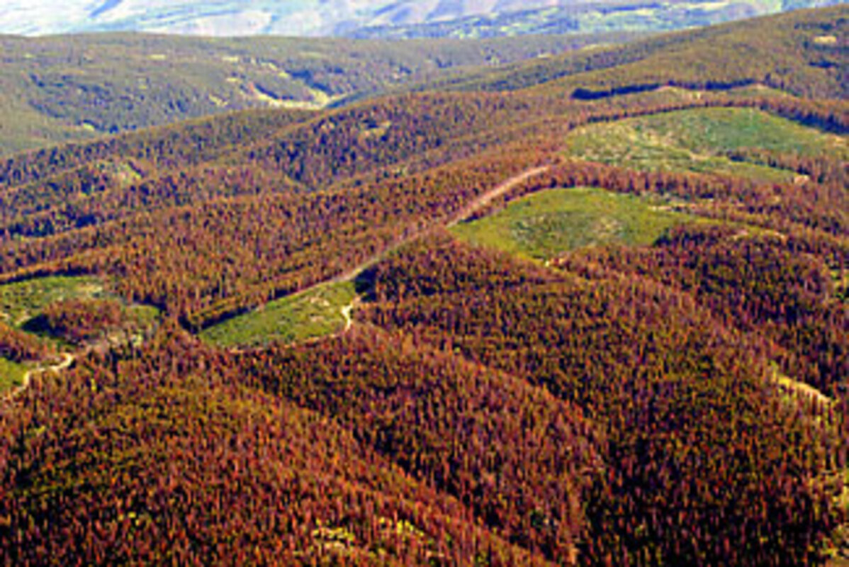 And the outbreak highlights the challenges resource managers face as they try to preserve forest resilience in the face of a changing climate and pressure to exploit timber and mineral resources. Because the beetles stay burrowed underneath the bark, the only known method to control infestations before they get out of hand is to cut down the trees they've killed or the live trees they've infected. It's an approach that raises the hackles of some environmentalists and ecologists alike.