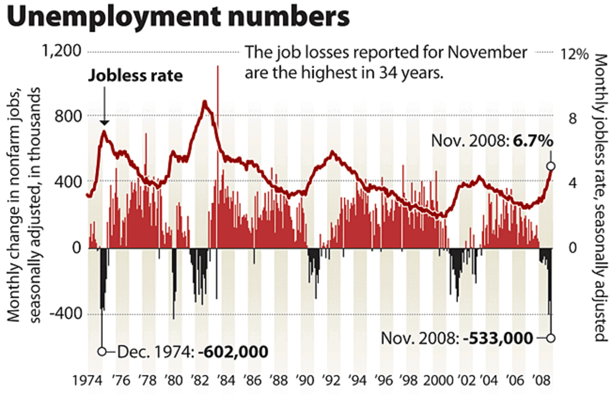 Mr. Obama's comments follow the Labor Department's report last Friday that the United States lost 533,000 jobs and the unemployment rate rose to 6.7 percent in November. Over the past three months, job losses have totaled 1.2 million, a statistic that implies that a sharp contraction of the economy is under way.