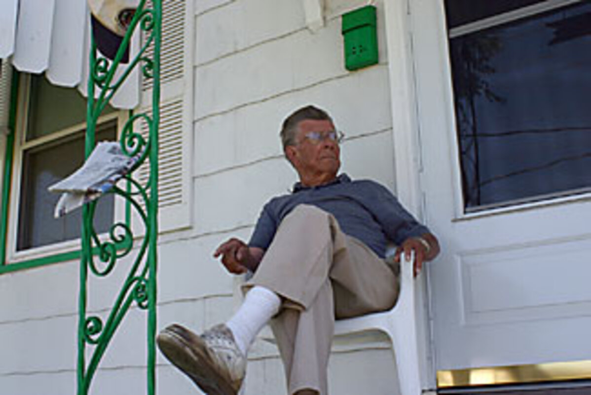 Then 79 years old, Harold Brehmer traversed the worst-flooded parts of St. Bernard Parish for three days after Katrina, at one point getting lost and climbing a baseball field fence to find high ground. He explains how huge water spouts came out of the sewers and "water came down the streets at 100 miles per hour." For three days, his family thought he was dead.