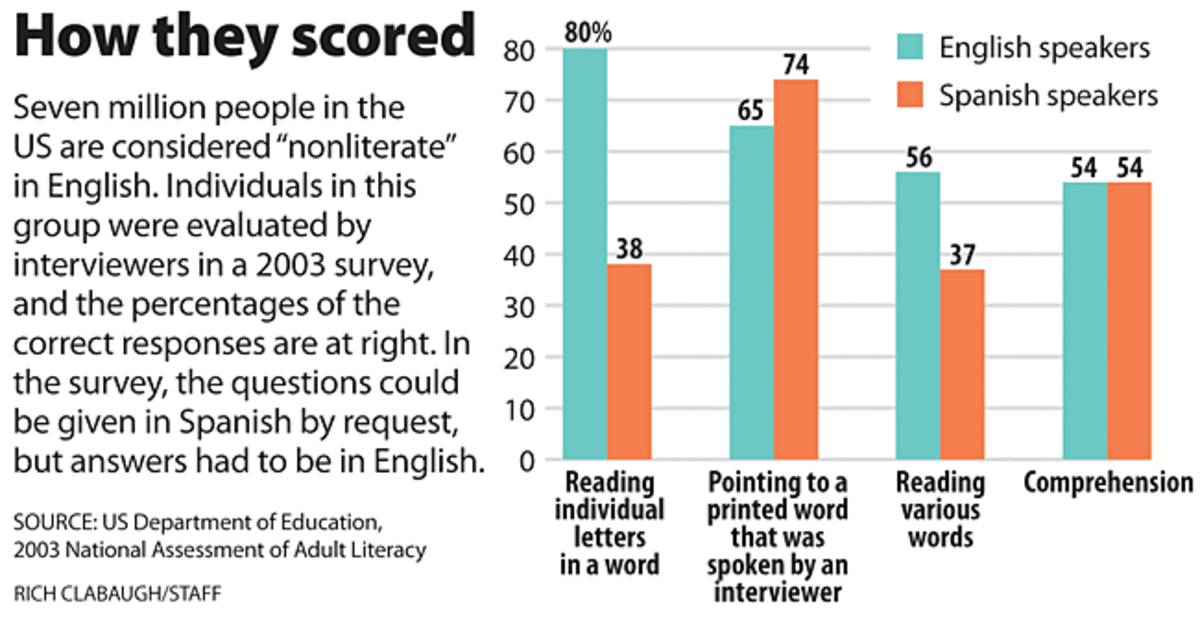 鈥anguage background clearly plays a role. Among those who spoke only English before starting school, 39 percent score below 60 in oral fluency. But among those who spoke Spanish before starting school, the percentage of slow readers is much higher: 72 percent.