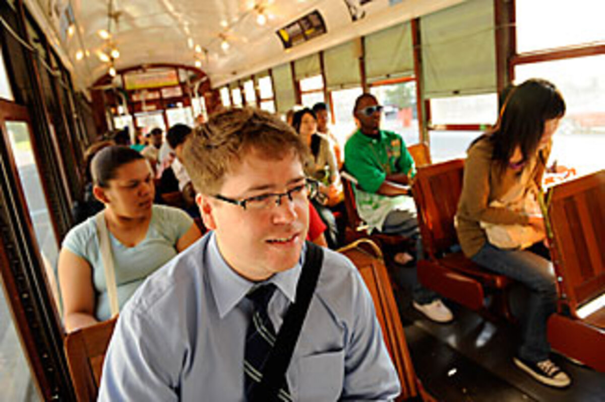"It's hard to believe, but New Orleans has become a legitimate city," he says, riding the St. Charles Streetcar line to a promising follow-up interview. "It's got jobs, great culture, history, and it's a city where people walk, which I like."