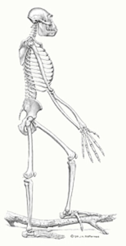 Her hand and wrist bones indicate that she didn't knuckle-walk like modern gorillas and chimps, either. Rather, when in trees, she strolled atop branches on all fours as monkeys do, the authors surmise. And when on the ground, she walked on two feet.