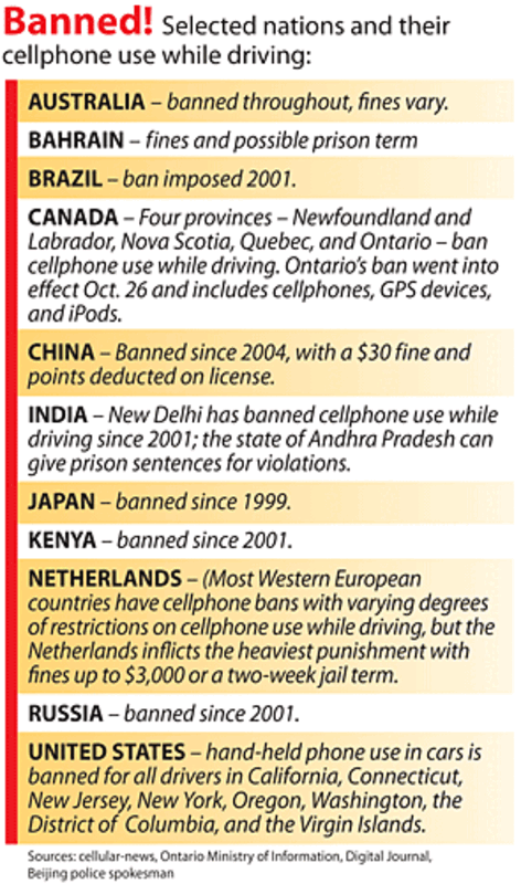 While dozens of countries 鈥 from Australia to Zimbabwe 鈥 take a harsh view of this behavior and have banned hand-held phones in cars, there is little social stigma in the US.