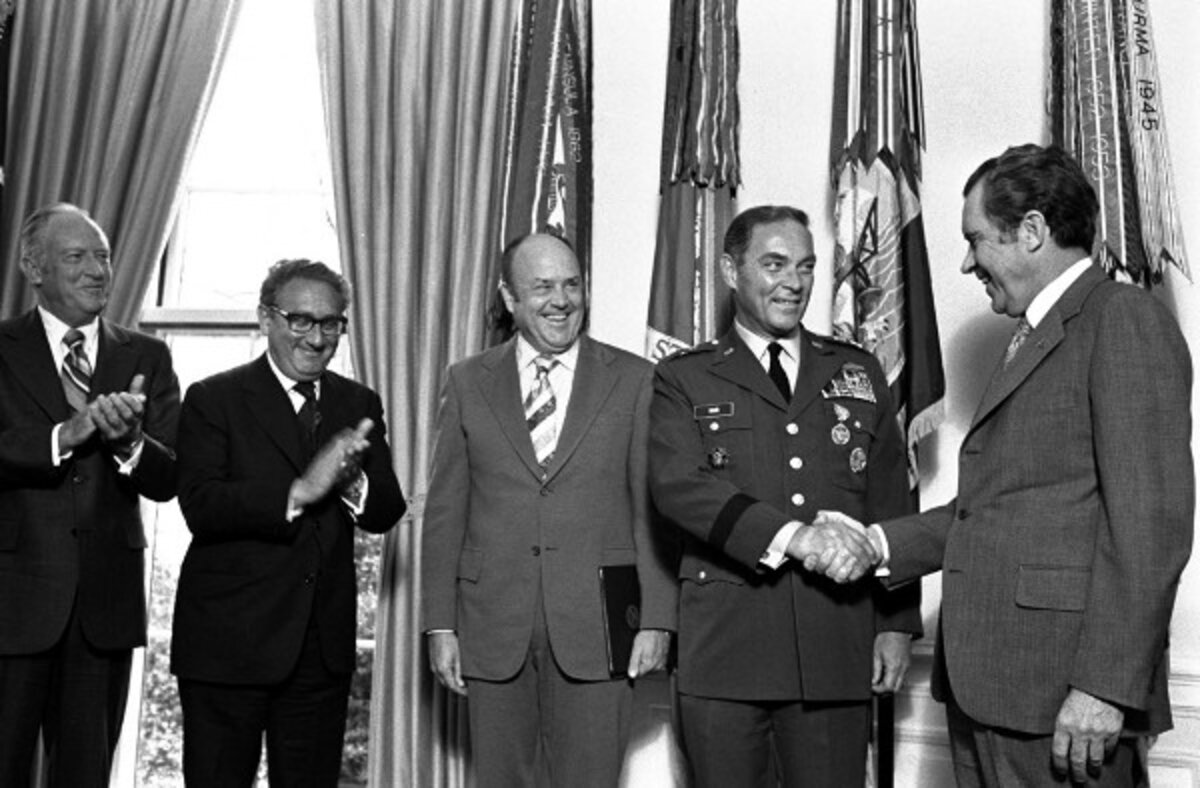 Before his rise to power and brushes with the Oval Office, Haig laid the groundwork for his political career in Korea and Vietnam. Reads his official Army citation in reference to a bloody two-day battle at Ap Gu in March 1967: 鈥淲hen two of his companies were engaged by a large hostile force, Colonel Haig landed amid a hail of fire, personally took charge of the units, called for artillery and air fire support and succeeded in soundly defeating the insurgent force."