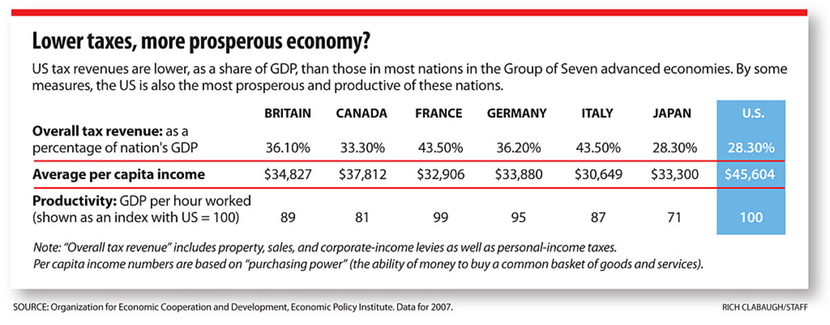 Daniel Mitchell, a tax expert at the libertarian Cato Institute, favors spending restraint and efforts to boost economic growth through a simpler, more efficient tax code. "The international comparisons are instructive," he says. Fiscal quagmires are "all about too much government spending," which then puts upward pressure on tax rates.