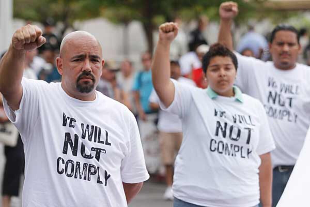 The executive director of NDLON, Pablo Alvarado, calls the law "absolutely unacceptable to our community," and said that the organizers are urging peaceful resistance. 鈥淭he other side has legislators and men with badges, but these are the only tools we have at our disposal,鈥 he says. Mr. Alvarado says some union-sponsored caravans of workers are already scheduled to head to Phoenix from Los Angeles to protest the law.