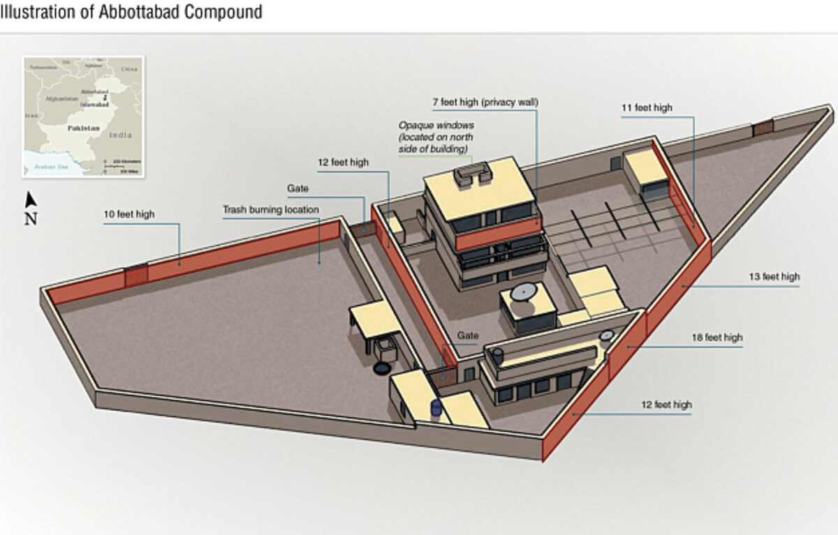 Last August, the US finally identified his home 鈥 and they were shocked when they did. It was a compound in Abbottabad, Pakistan, about 75 miles north of Islamabad. The house was large 鈥 about eight times larger than the average for the area. It was surrounded by 12- to 18-foot walls topped with barbed wire. Internal walls sectioned off different areas of the compound.