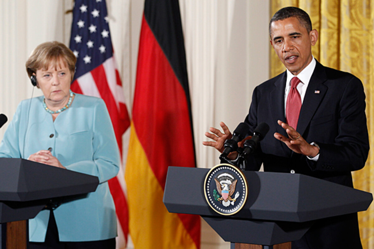 In their White House press conference Tuesday, President Obama and German Chancellor Angela Merkel stood together on topics ranging from the global economy to Libya.