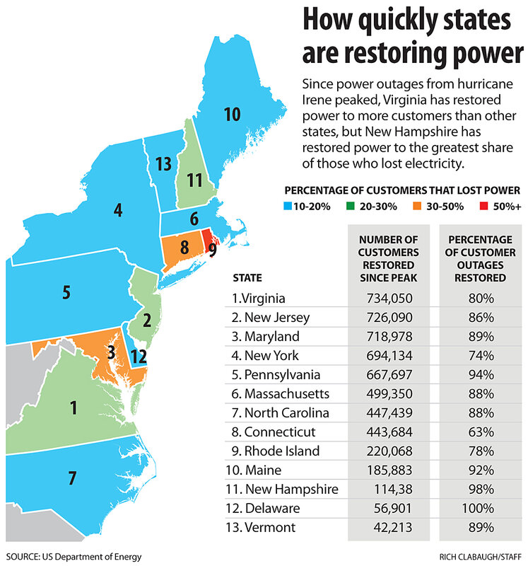 Irene aftermath: Which states are restoring power the quickest – and why?