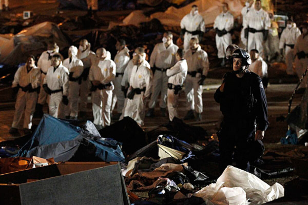 鈥淭he city did an exemplary job of balancing two sets of rights,鈥 says Robert Pugsley, law professor at聽Southwestern聽Law聽School in Los Angeles. 鈥淭he mayor had an absolute right to clear it, because for every free speech right to assembly, there is the overriding concern for public safety.鈥