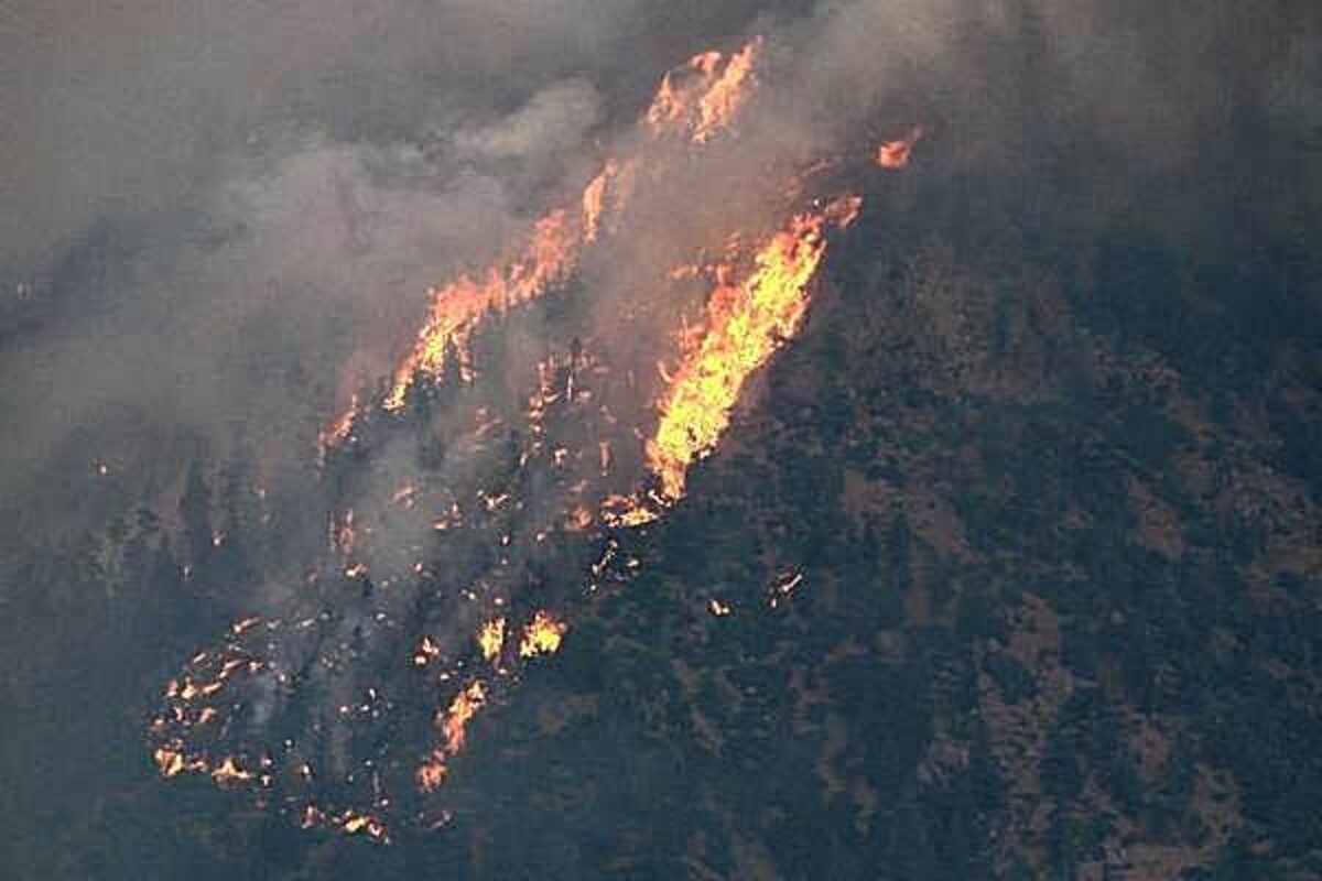 Air tankers dropped fire retardant in the blaze's path to slow its advance, while firefighters on the ground battled to protect homes along a highway at the mountain's edge, including the upscale, gated community of Cedar Heights. No homes were reported burned, but the fire consumed a wooden tent platform.