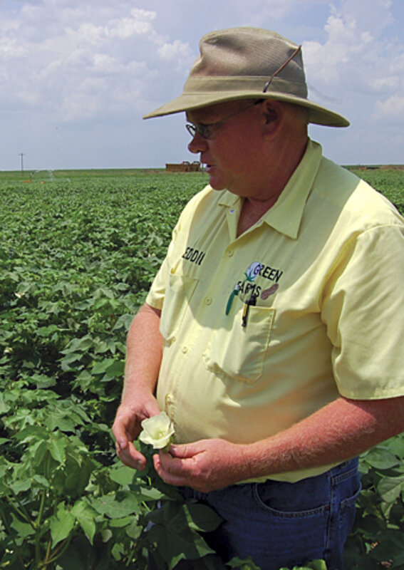 "It was the hottest, driest summer I'd ever seen," he says, standing amid impressive rows of flowering cotton, "and I had the biggest, most profitable crop I'd ever had."