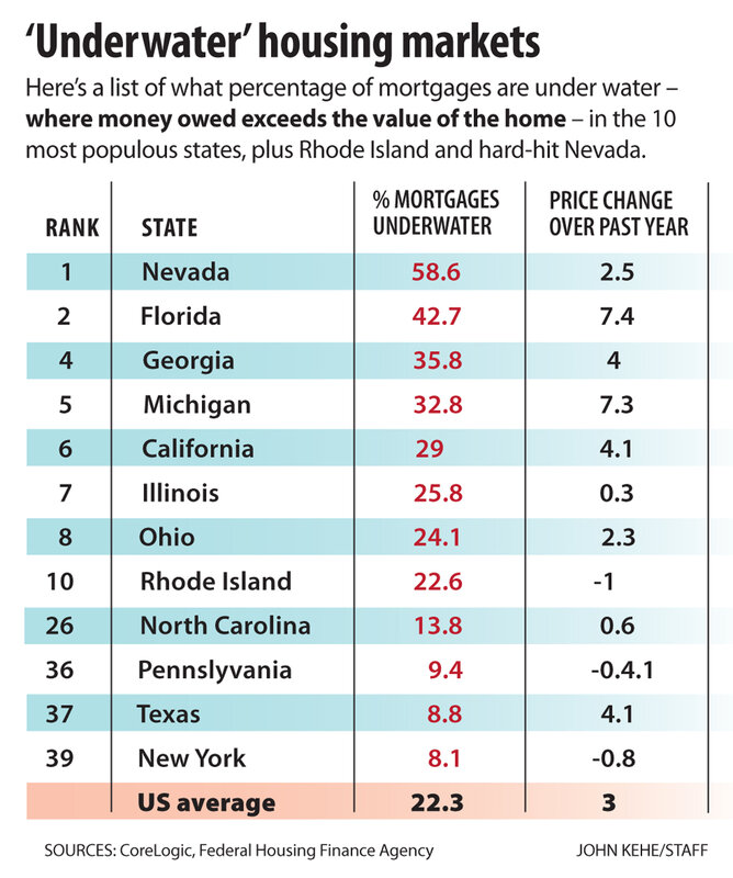 A staggering share of mortgage borrowers 鈥 more than 1 in 5 in this state and in the nation 鈥 are "underwater," with loan balances that outstrip sunken property values. This problem of negative equity is one of the biggest obstacles to the revival of more normal times in housing.