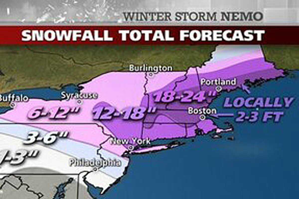 The forecast below shows why The Weather Channel's Jim Cantore is brandishing a yardstick in Boston today. While his colleague in NYC is carrying a 12-inch ruler. Will Nemo measure up to the hype?