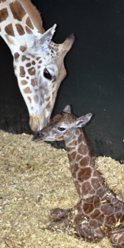 Petal, a 6-year-old endangered Rothschild giraffe, gave birth to a female calf Friday, marking the first giraffe birth for the LEO Zoological Conservation Center in Greenwich, Conn.