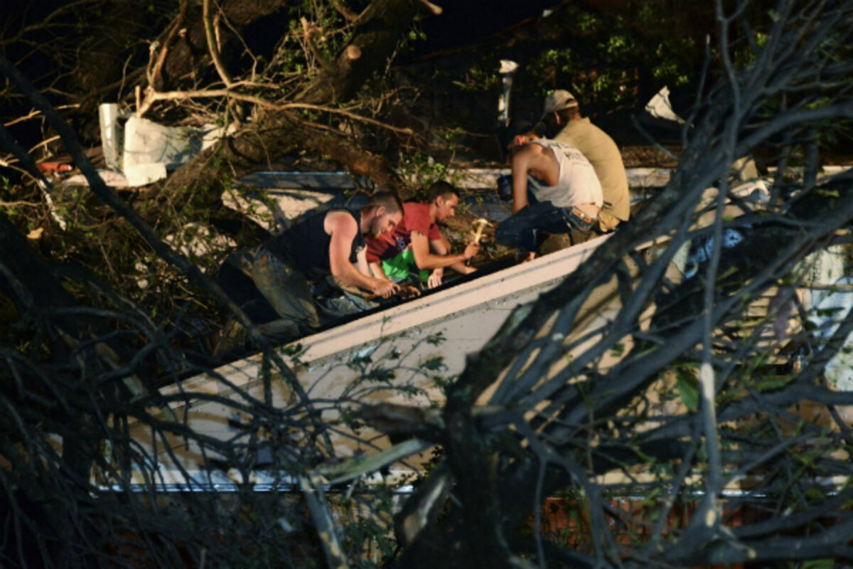 A tornado swept down on Kansas late afternoon Sunday on the southwest side of Wichita, near the Mid-Continent Airport, according to the National Weather Service (NWS). Several homes suffered window, siding, and roof damage, and more than 53,000 homes lost power. The storm was so immediate, it disrupted several high school graduation ceremonies as heavy rains and hail forced attendees to seek shelter. More than two inches of rain pounded Wichita streets, causing some flooding.