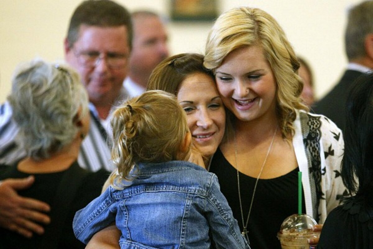 At the Guardian Angel Roman Catholic Church in Santee, Calif., near San Diego, an estimated 500 people attended the funeral of Hannah鈥檚 mother and younger brother, Christina and Ethan Anderson.